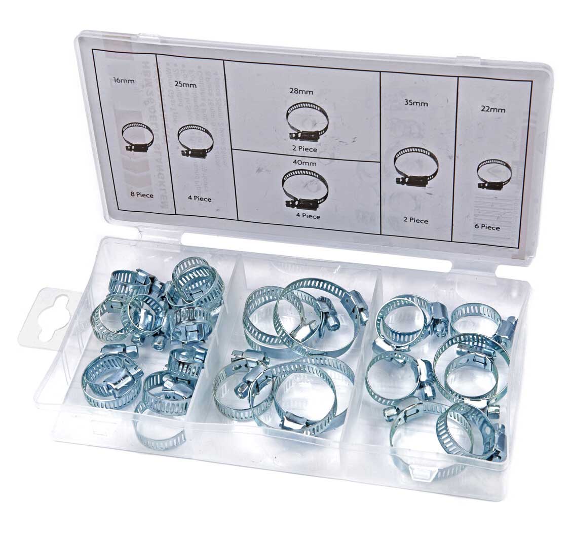 - Hadicové spony - sťahovacie pásky na hadice pre priemer 16 - 38 mm, 24 dielov