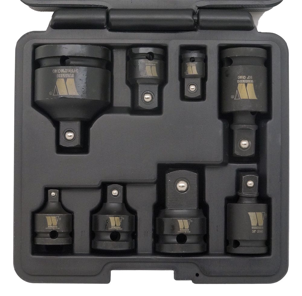 - Hlavice - adaptéry nástrčné 1/4", 3/8", 1/2" a 3/4", pre rázové uťahováky, kované, sada 8 dielov, Welzh