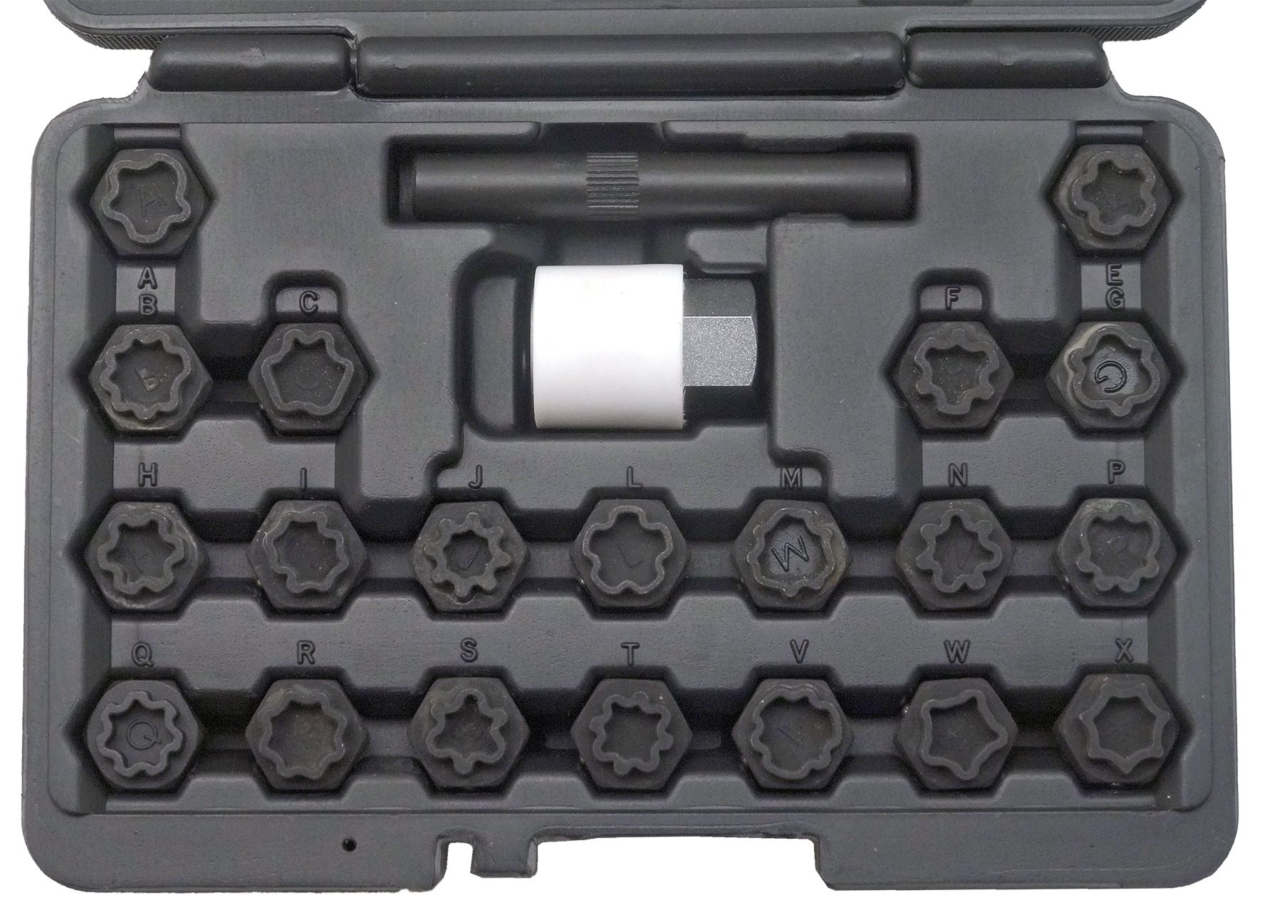 Zásuvky sú určené na demontáž a montáž bezpečnostných skrutiek na kolesách vozidiel VAG.