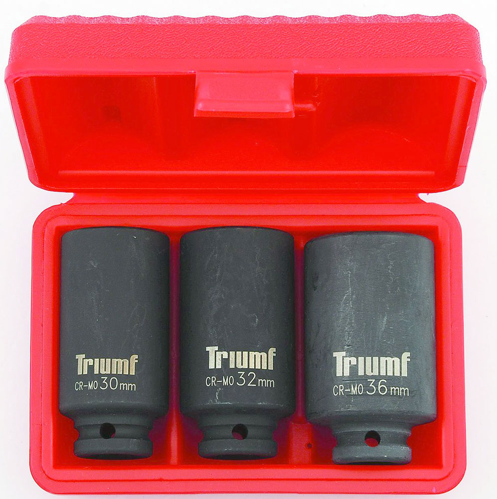 Nástrčné hlavice 1/2", 12 hrán, 30-36 mm, CrMo, predĺžené, pre poloosi, 3 ks, Condor Werkzeug