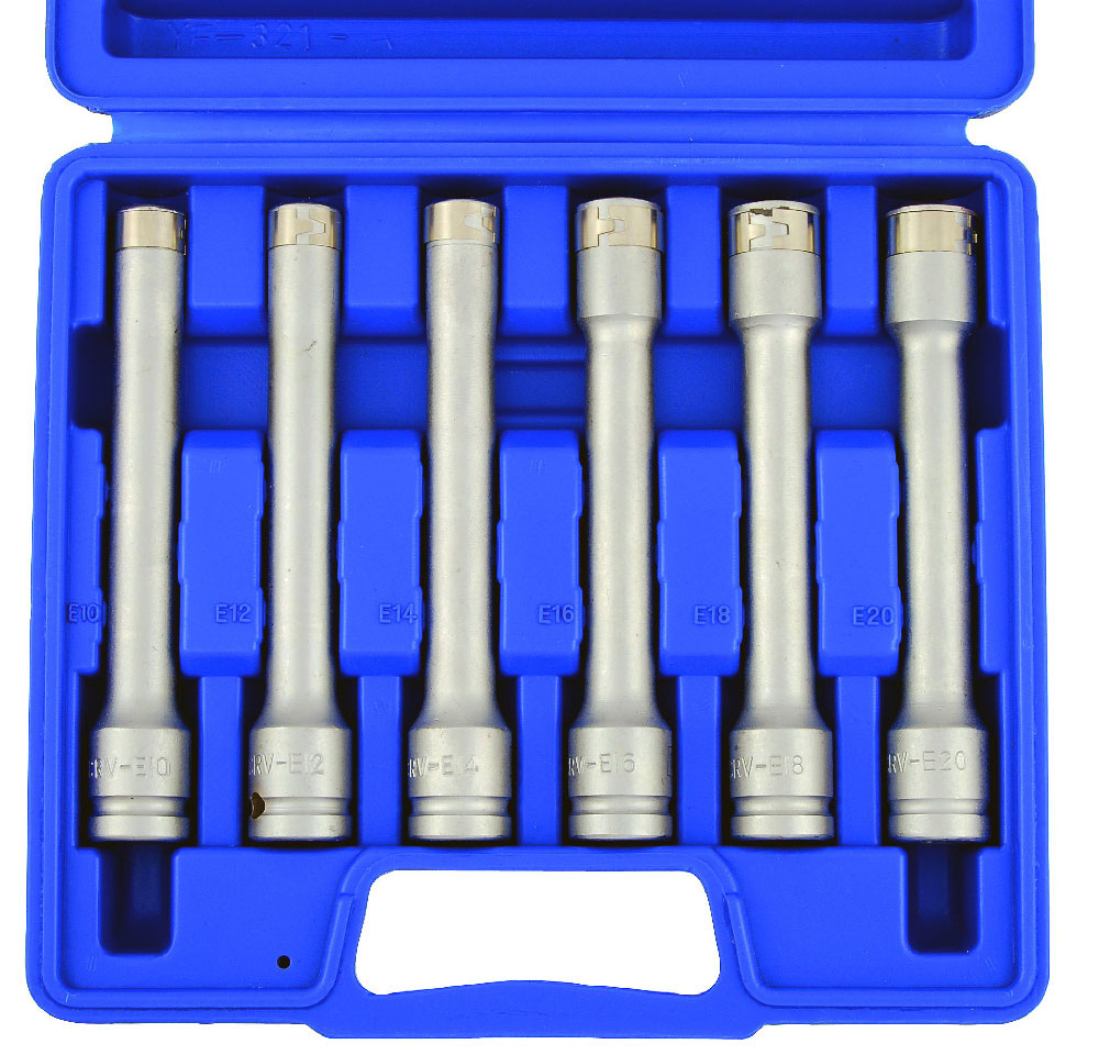 - Hlavica nástrčné 1/2", E-profil E10 - E20, dĺžka 145 mm, sada 6 dielov, Condor Werkzeug