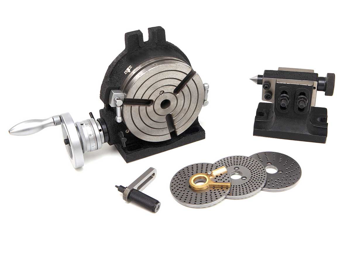 - Horizontálny a vertikálny otočný stôl 150 mm, 3 deliace kotúčiky, koník, sada