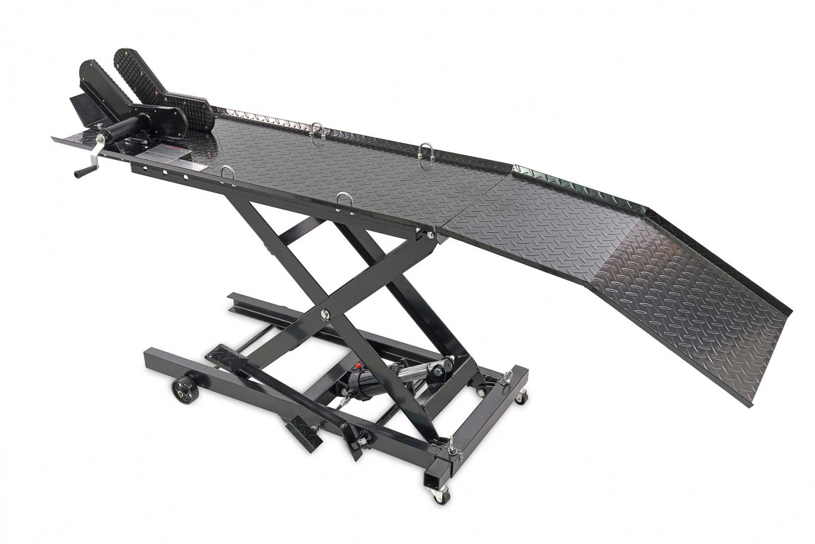 Hydraulický motocyklový zdvihák 100, zdvihnutie až 360 kg, hmotnosť 100 kg, čierny