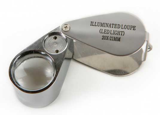 - Vrecková lupa s 20x zväčšením a LED svetlom