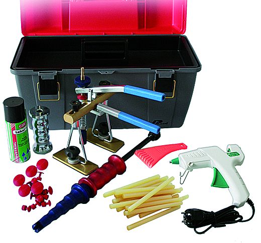 obsahuje: spätné kladivo, extraktor, hrot, horúcu pištoľ, rozpúšťadlo, horúce tyčinky, lepiace hubky, škrabku