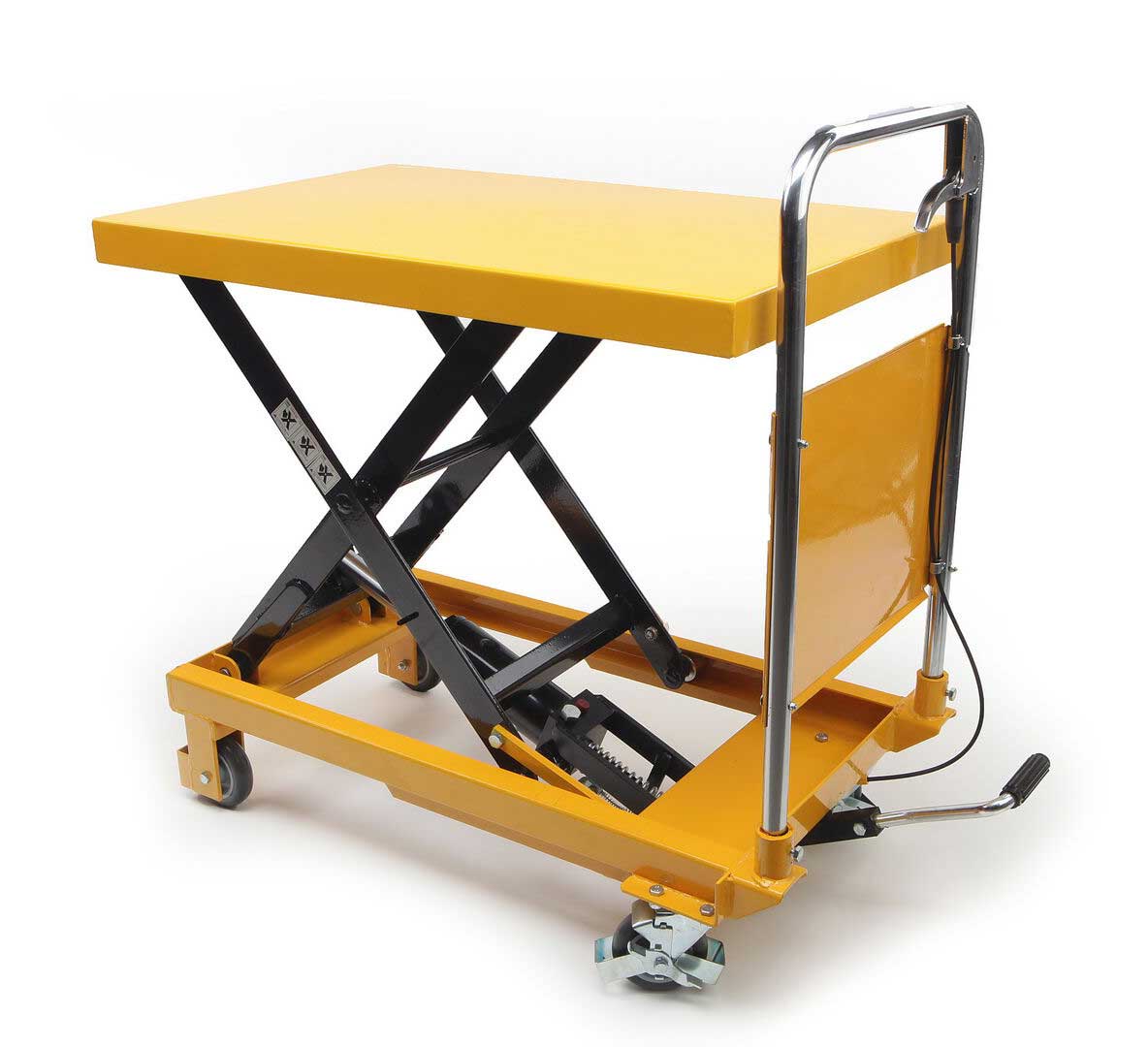 - Manipulačný vozík s hydraulickým stolom, nosnosť až 300 kg, hmotnosť 60 kg