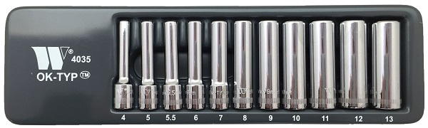 - Nástrčné hlavice 1/4", Lok-TYP, 6 hrán, 4 - 13 mm, predĺžené, CrV, sada 10 dielov, Welzh
