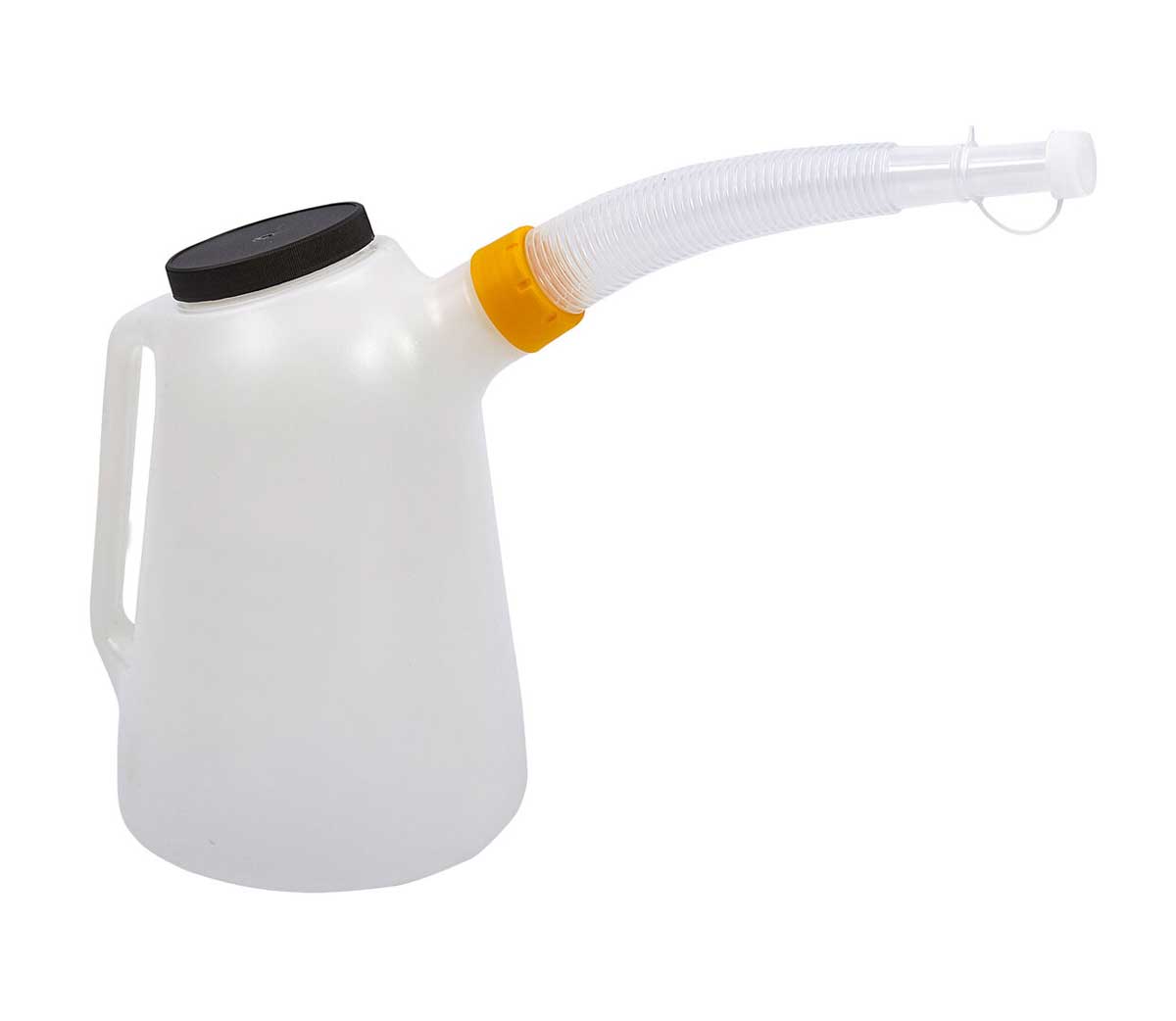 Uzavretá nádoba na olej s vekom a výlevkou. Vyrobené z kvalitného bieleho polyetylénu.Obsahuje robustné veko na ochranu pred prachom a odnímateľnú trysku s tesnením.Chráni tak kvapaliny pred kontamináciou a zabraňuje riziku úniku.