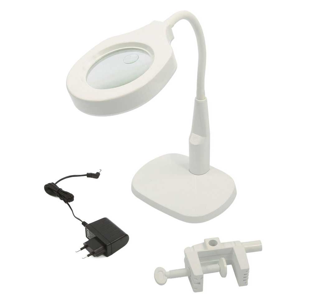 Pracovné LED svetlo 125 mm, s lupou, podstavcom a upínacou svorkou