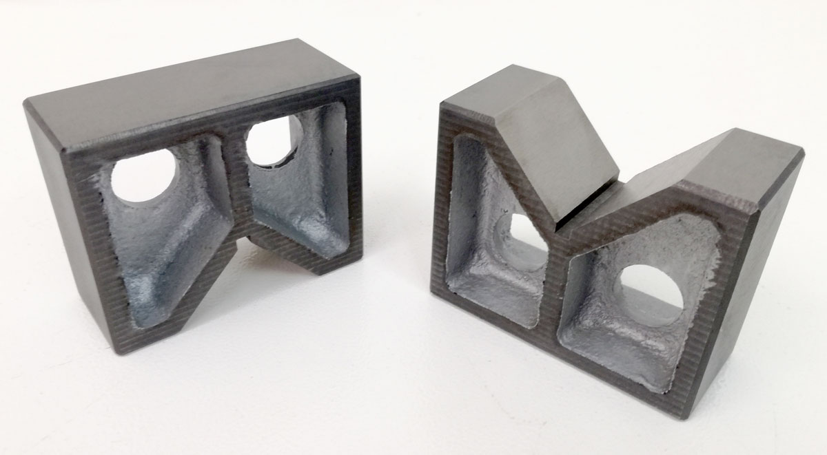 - Presne brúsené liatinové V-bloky pre strojný zverák alebo upevnenie okrúhlych obrobkov pri frézovaní, 125 mm, 2ks