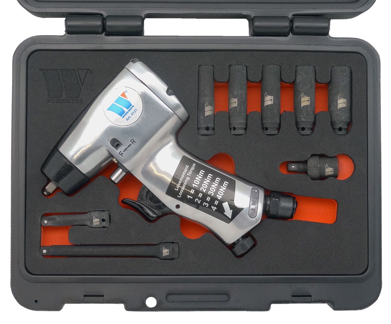 Rázový vibračný uťahovač je navrhnutý tak, aby poskytoval nízky krútiaci moment v 4 stupňoch (10, 20, 30, 40 nm).