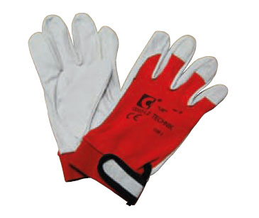 Pracovné rukavice, dlaň z kozej kože, bavlnený pletený chrbát, so suchým zipsom na zápästí.