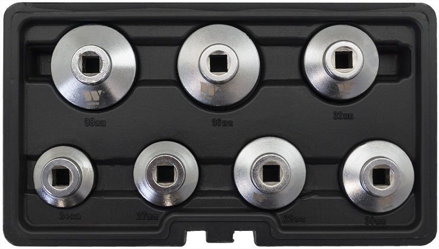 - Sada kľúčov-hlavíc na povolenie olejového filtra, nízky profil, 7 dielov, Welzh