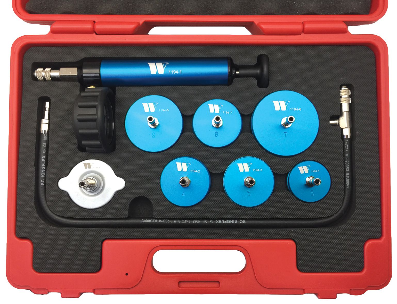 - Súprava na testovanie tesnosti chladiaceho systému nákladných áut - 9 dielov, Welzh