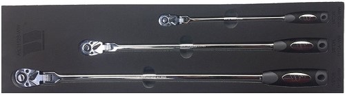 - Súprava račien 1/2", 3/8", 1/4", s výkyvnou hlavou, extra dlhé 300-580 mm, 72 zubov, 3 ks, Welzh
