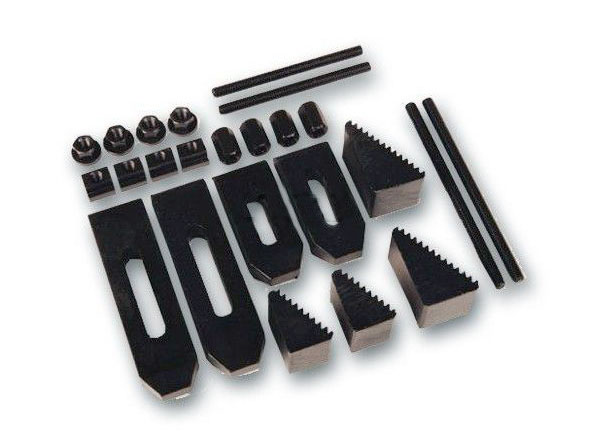 Kvalitná a komplexná sada upínačov pre menšie frézky, lícne dosky, frézovacie strmene.