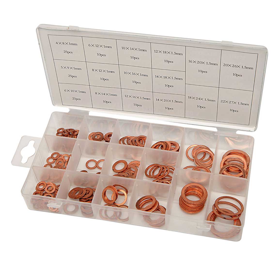 Sortiment medených podložiek 4 - 22 mm, 205 dielov