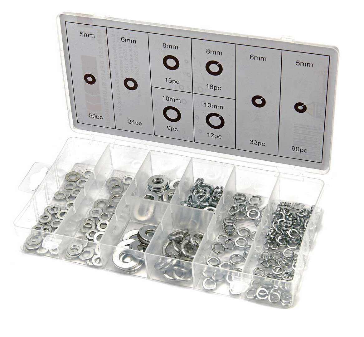 Sortiment podložiek a pružných podložiek, priemer 5 - 10 mm, 250 dielov