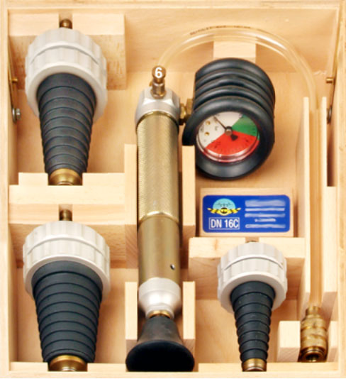 Merací nástroj sa používa na zisťovanie netesných miest v chladiacom systéme. Celá je vyrobená z nehrdzavejúceho materiálu - tvrdeného duralu, mosadze so zvýšenou pevnosťou. Oceľový valec čerpadla s povrchovou úpravou z nehrdzavejúcej ocele. Pripojenie čerpadla ku kužeľom sa vykonáva pomocou rýchlospojok. Na jednoduchú manipuláciu sú kužeľové uťahovacie matice vybavené axiálnym guľôčkovým ložiskom.
