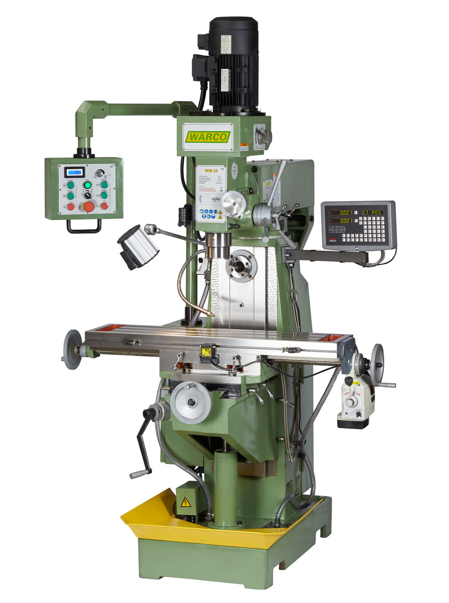 - Warco WM 50, horizontálna / vertikálna nástrojárska frézka, ISO40 - 1100 kg
