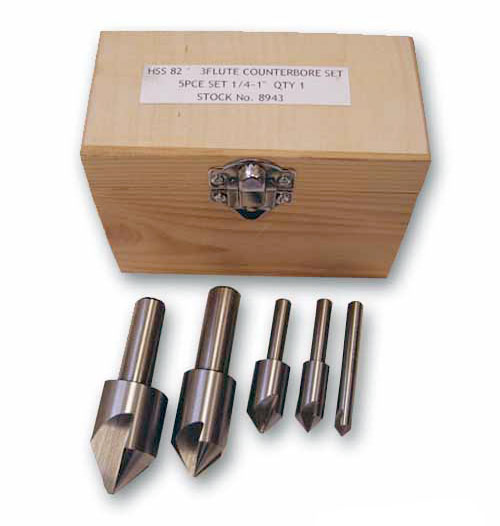 Záhlbníky 1/4" - 1" , uhol 82 °, 3 čepele - sada 5 dielov, HSS, Warco